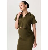The Nursing Top Aalborg from Noppies Maternity is a must-have in your wardrobe. The olive-colored nursing top features a V-neck and short sleeves, making it perfect to pair with a high-waisted legging, pants, or skirt. Additionally, breastfeeding or pumping is made easy as you can simply lift the top. What more could you want?