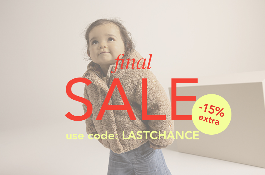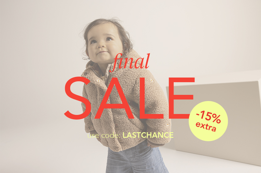 Laatste dagen van onze Final Sale! Tot 60% korting + extra 15% op alle sale-items. Gebruik code LASTCHANCE bij het afrekenen.BabyKidsMaternity